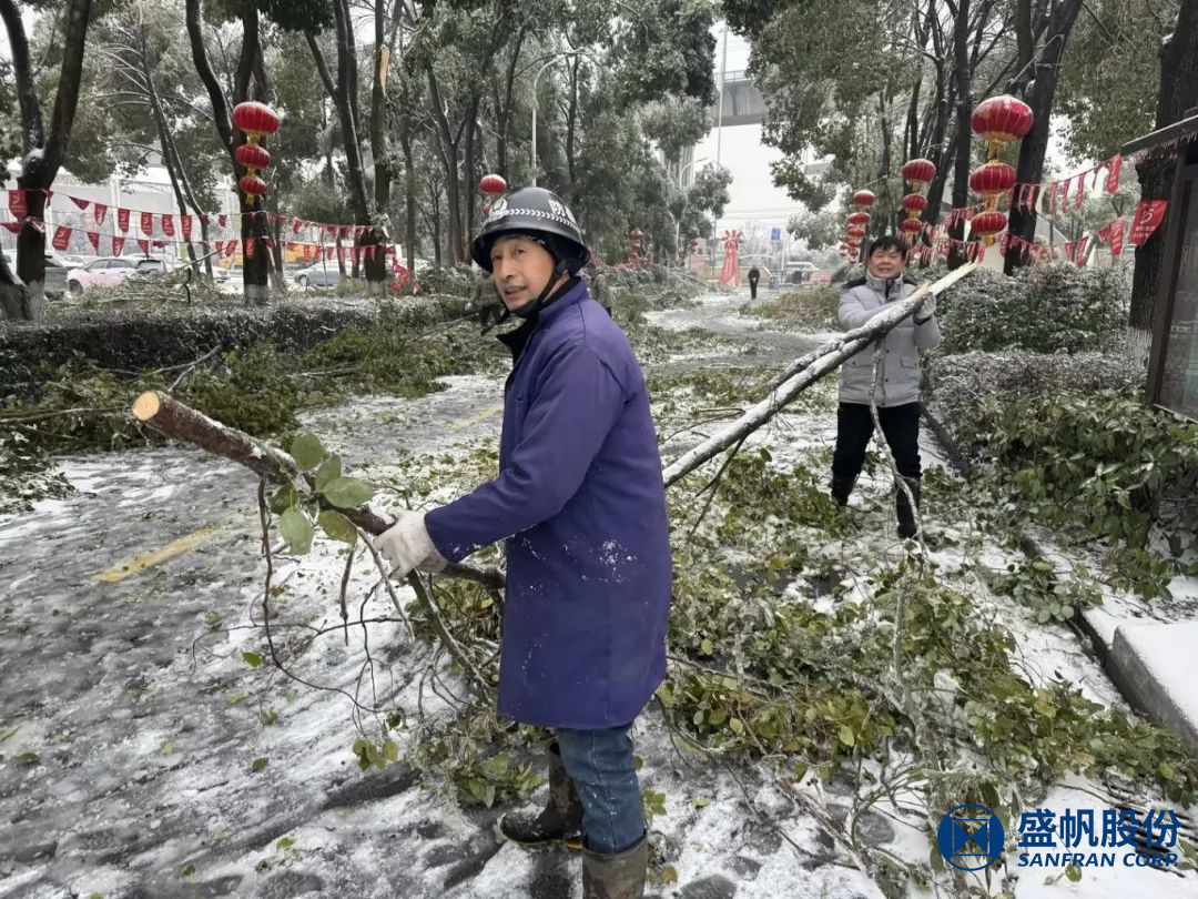 为不留一丝隐患,尽快恢复通行,后勤一线破冰保畅员工立即投入到铲雪、清理断枝的抢修行动中。